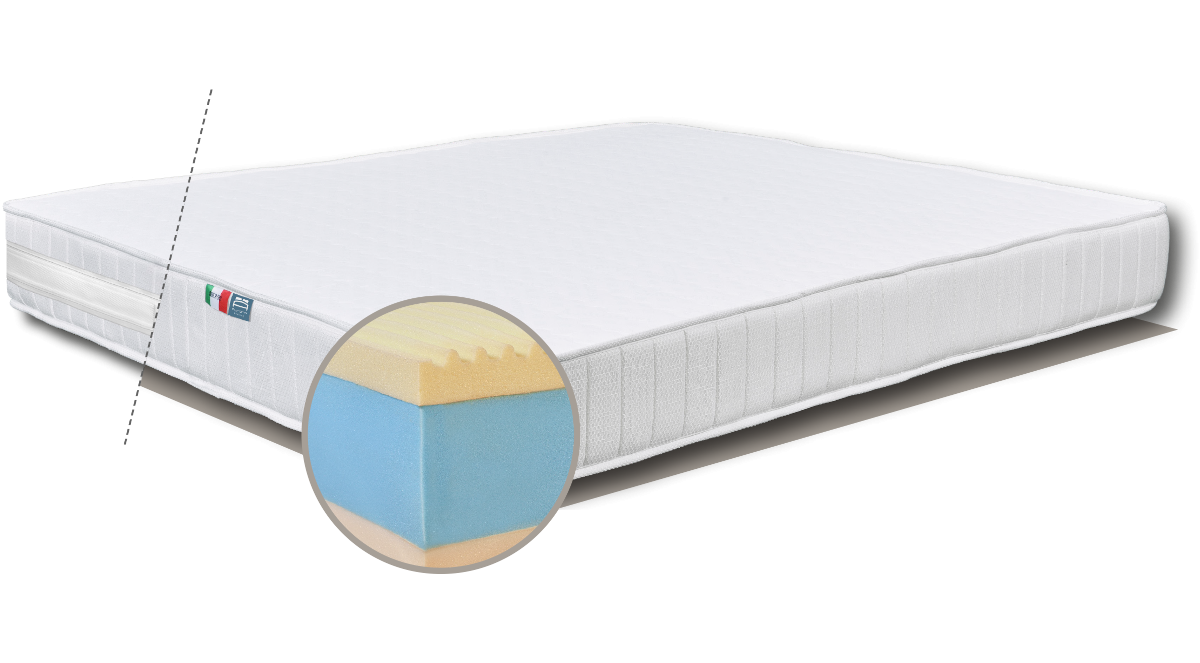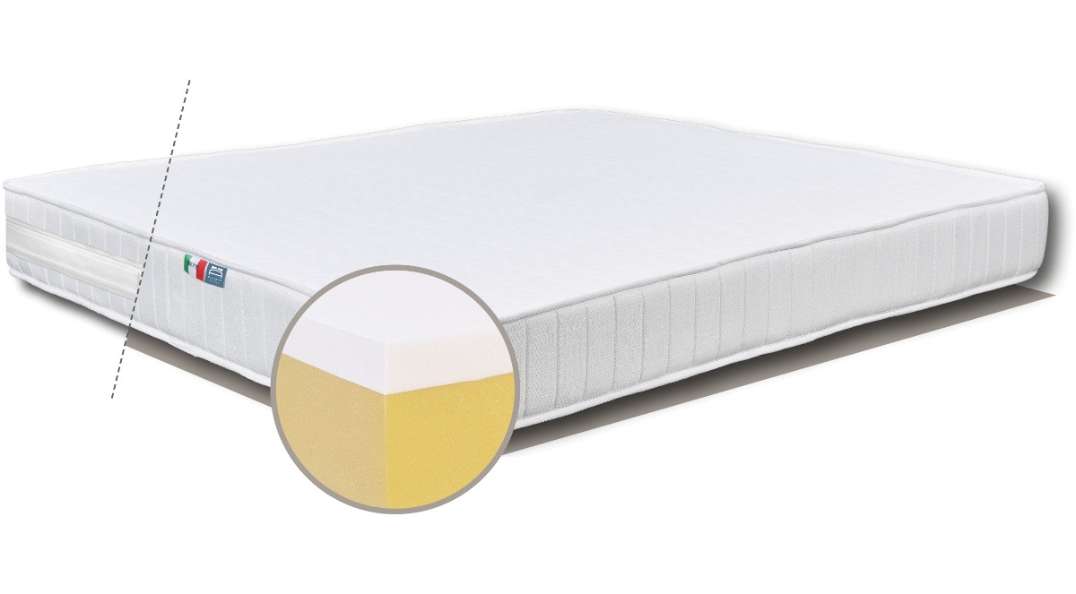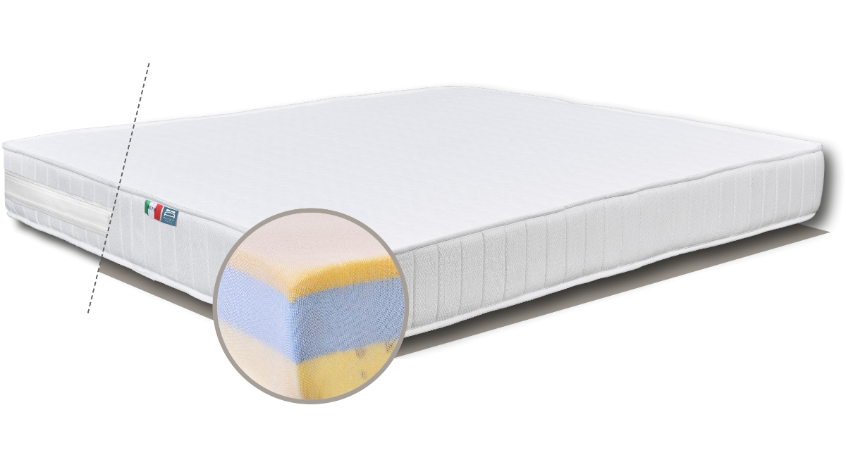 The sandwich inner structure, made of a layer of memory foam within two layers of flexible and un-deformable polyurethane ensures a balanced and ergonomic support and guarantees a healthy relaxation of the back. Lift has a cotton jersey undercover. For outstanding hygiene, the outer cover is completely removable and washable at 40°C. Outer shell with anti-bacterial treatment certified for 10 years in available upon request.