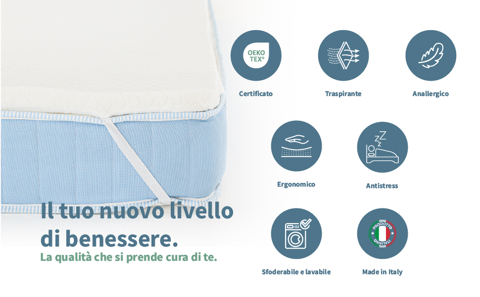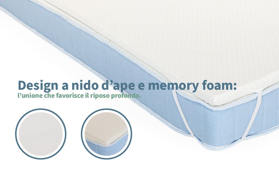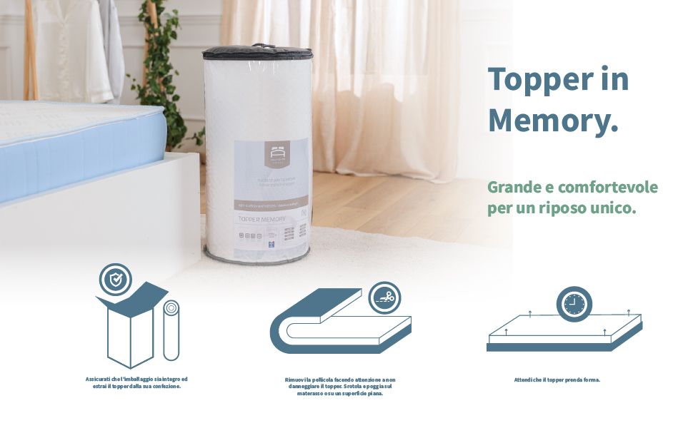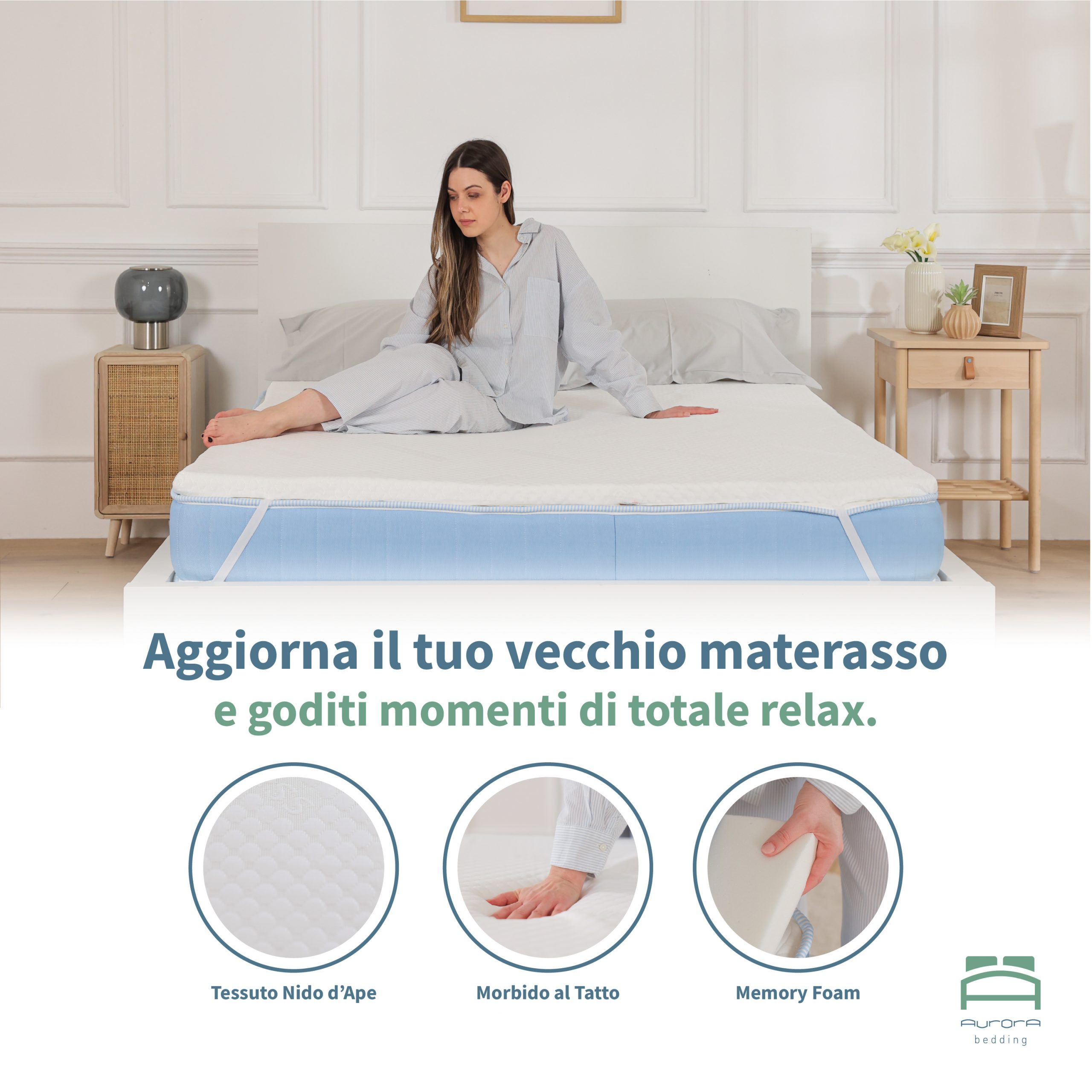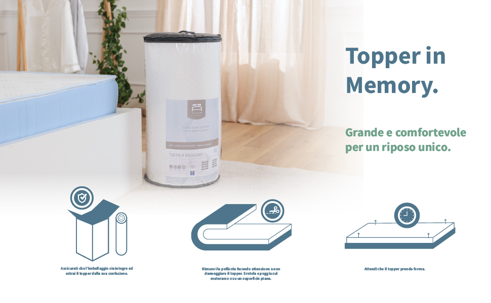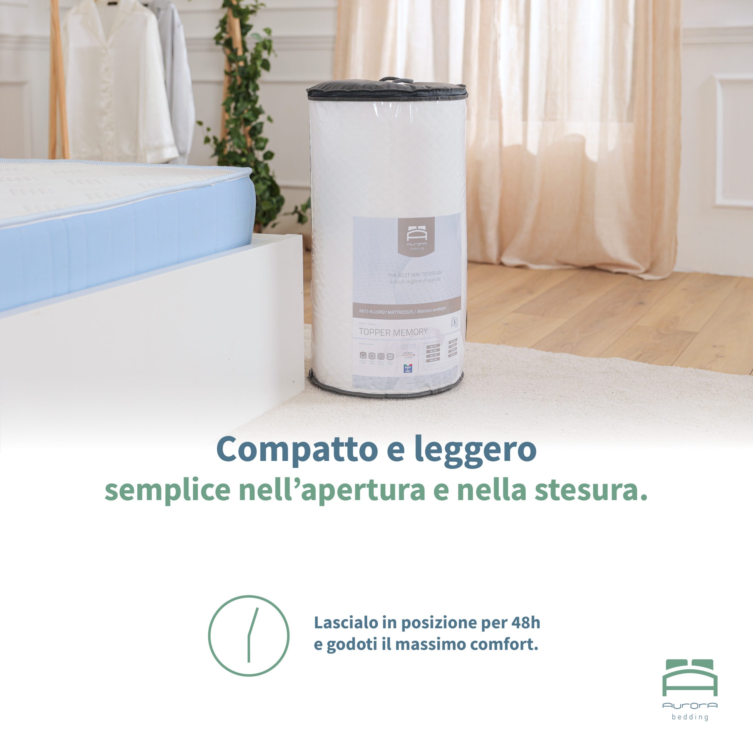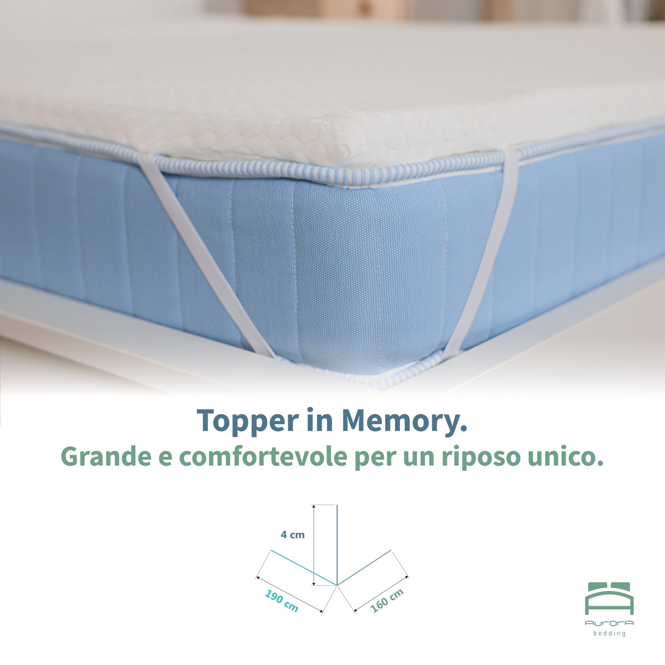 Topper ortopedico spessore cm.4 in memory foam con grado di rigidità soffice, ultra traspirante ideale per aggiungere piacevolezza e accoglienza al materasso.